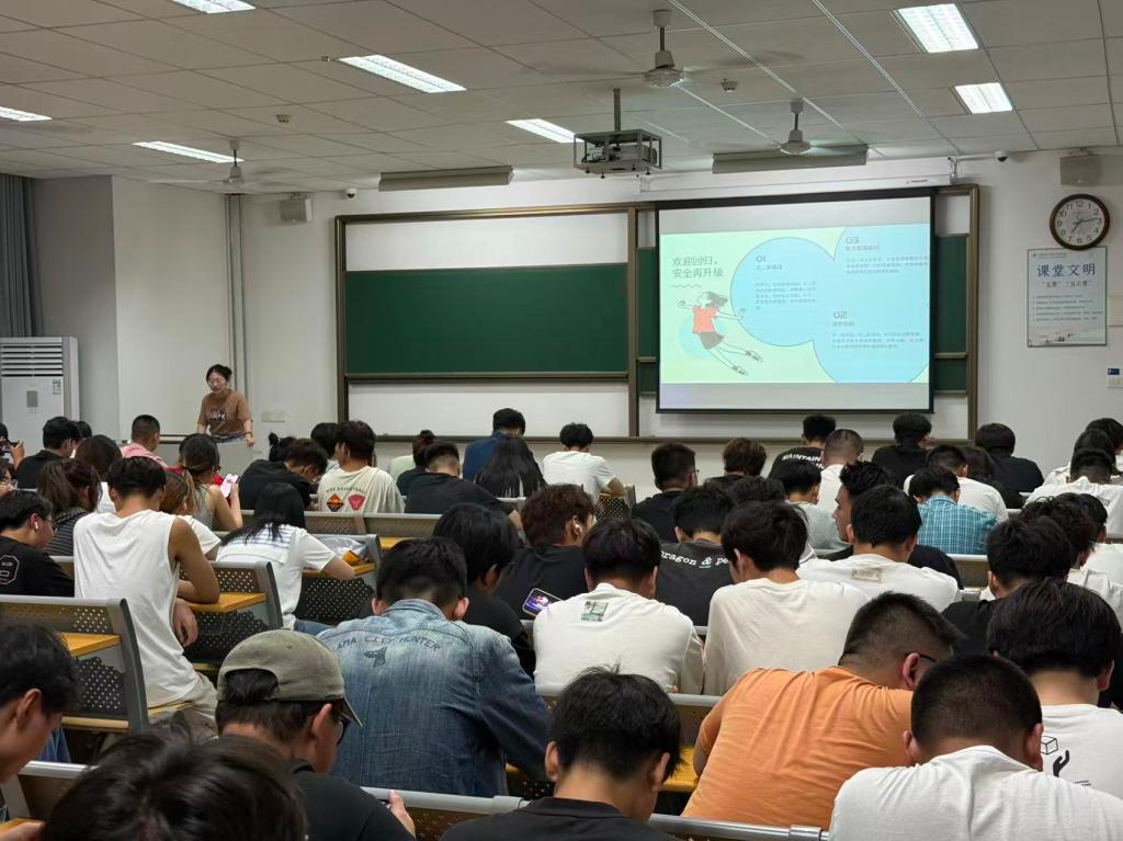 “刷单返利的截图看似‘赚钱捷径’,实则是诈骗分子的‘陷阱’,大家一定要牢记‘三不一多’原则!” 在 2 教 420 教室,辅导员曹翠平展示的诈骗案例截图让在场学生直呼 “手心冒汗”。此次安全教育环节,学院辅导员团队以 “案例警示 + 实操指导” 的形式,构建起全方位安全防护体系。张乃祥老师围绕交通安全、网络安全、宿舍安全等 13 项内容展开细致讲解,从校园周边电动车骑行规范,到国家反诈中心 APP 的安装使用;从宿舍大功率电器的禁用要求,到实验室操作的安全准则,每一项内容都结合真实案例层层剖析,让安全知识从 “纸面规定” 转化为学生的 “肌肉记忆”。