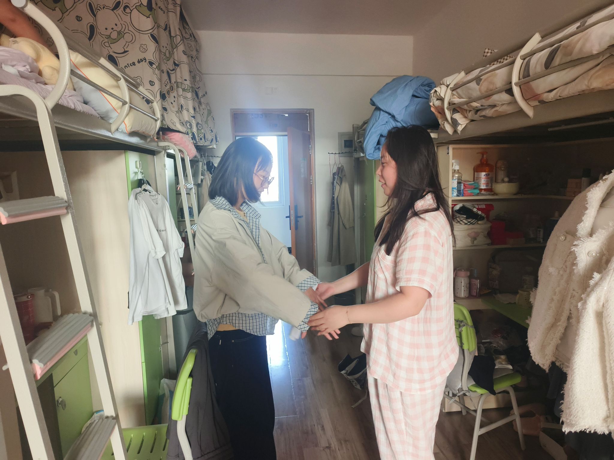 在巩固新生宿舍安全基础方面,检查专班延续“查、教、改”一体化模式,并新增“老生带新生”经验传递环节:用电与消防领域,重点复查前期发现的大功率电器使用、逃生通道堵塞等问题整改情况,确保隐患“清零不反弹”;邀请获评“星级宿舍”的老生宿舍成员一起前行,分享安全用电与内务整理的实用经验;辅导员亓迪、刘文香结合老生宿舍曾出现的典型案例,开展“安全微课堂”,针对艺术生专业设备使用、假期离校前安全检查等场景,强化新生风险预判意识。