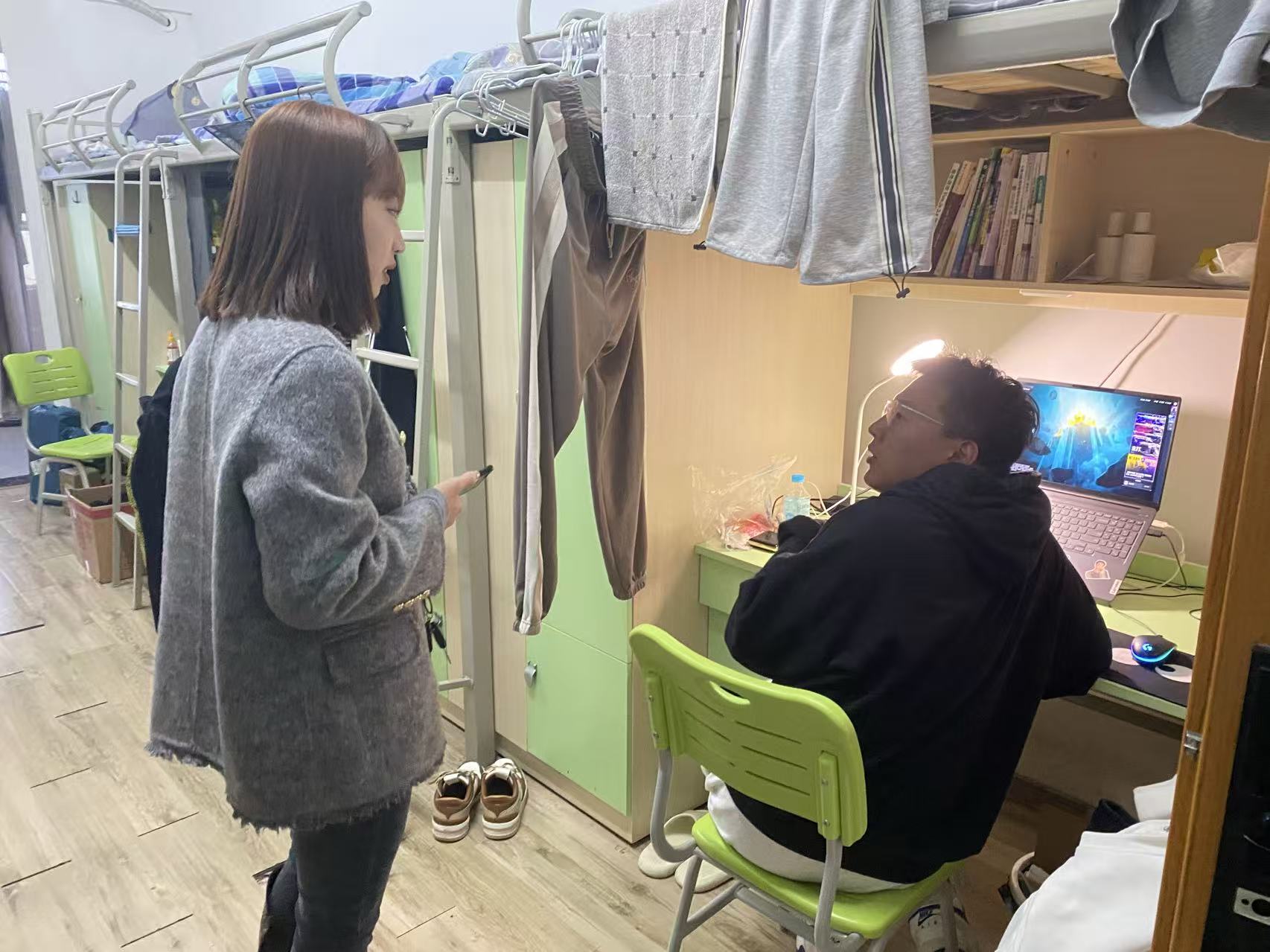 走访过程中,老师们带着对学生的关切,逐间走进宿舍,与学生亲切交谈。在学习方面,老师们结合大数据专业特点,询问学生课程学习进度、课后作业完成情况,并鼓励学生积极参与学校竞赛和学校完满活动。杨业彤老师表示:“学院始终关注每一位学生的成长,希望大家珍惜大学时光,不断提升专业能力。”