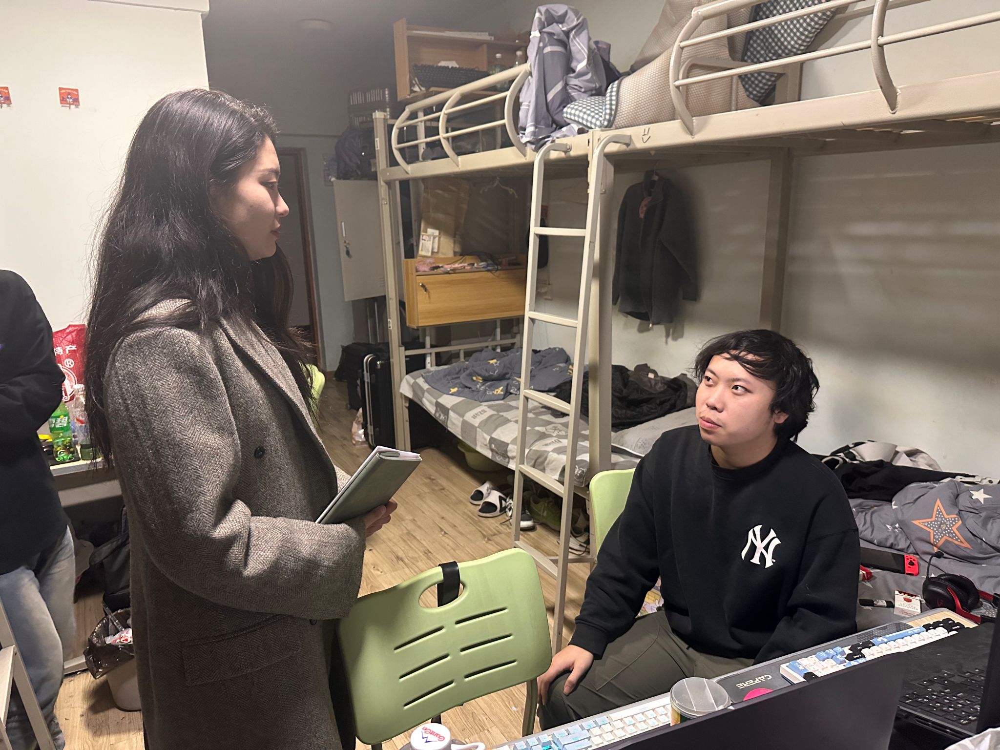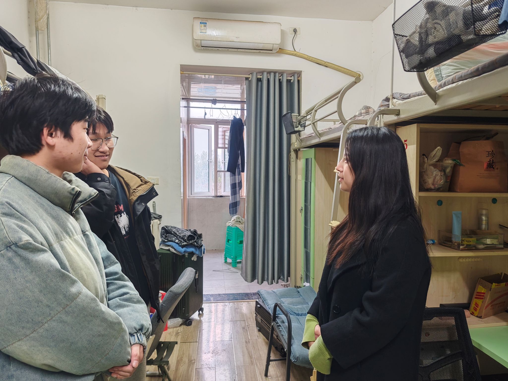 宿舍作为学子在校的“温暖港湾”,成为抵御寒冬的重要防线。为让学生感受到实实在在的关怀与暖意,有效预防冬季感冒,辅导员们带着对学生的牵挂,逐间走进宿舍,与学生面对面亲切交流,让宿舍的温暖不仅停留在室温,更流淌在师生心间。