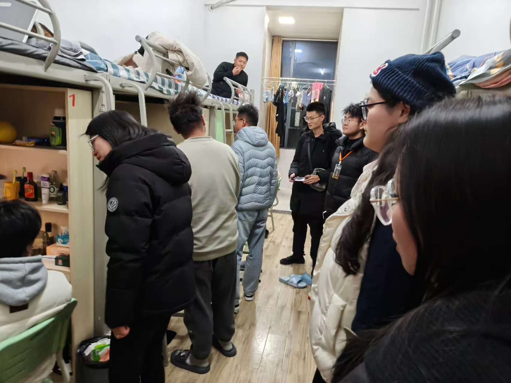 本次“关怀入寝”宿舍走访活动,以走进学生会主席宿舍为契机,充分发挥了学生骨干的榜样引领作用;通过深入交流学业规划与复习安排,切实加强了学风建设;同时结合流感防控,督促宿舍卫生整改,营造了更加整洁健康的生活环境。学院将持续开展宿舍走访活动,不断优化管理服务,为学生的全面成长与校园的和谐发展奠定坚实基础。