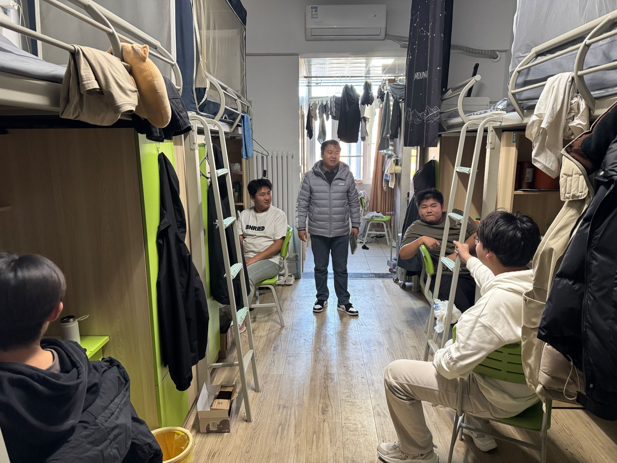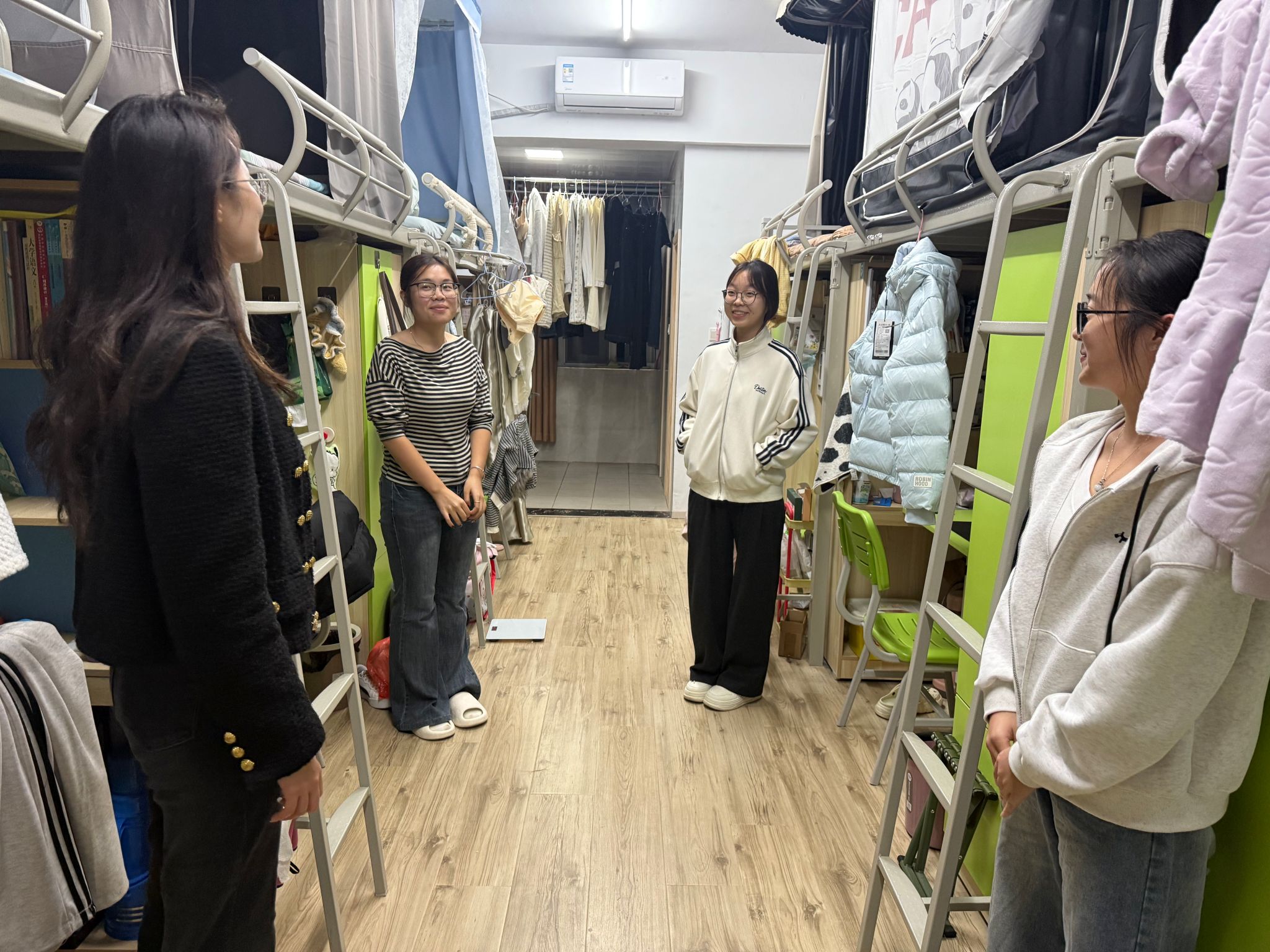 张乃祥老师仔细查看宿舍环境卫生与安全设施,提醒同学们注意用电安全、防火防盗,养成良好生活习惯;耐心倾听学习、生活中的困惑,针对学业规划、人际交往等问题给出实用建议,鼓励大家珍惜集体生活、互帮互助,营造和谐宿舍氛围。