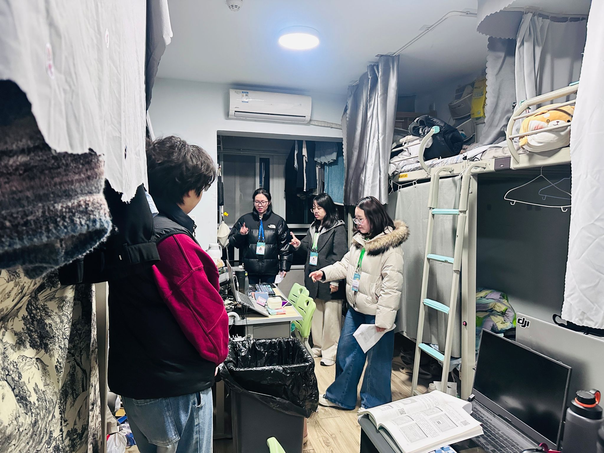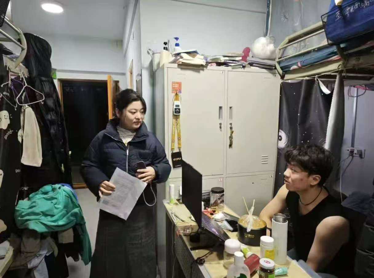 面对面交流更具温度。走访中,辅导员放下“管理者”身份,以亲切姿态与学生沟通,涵盖学业疏导、诉求响应及舍风引导,既完成安全检查,也实现深度对接。