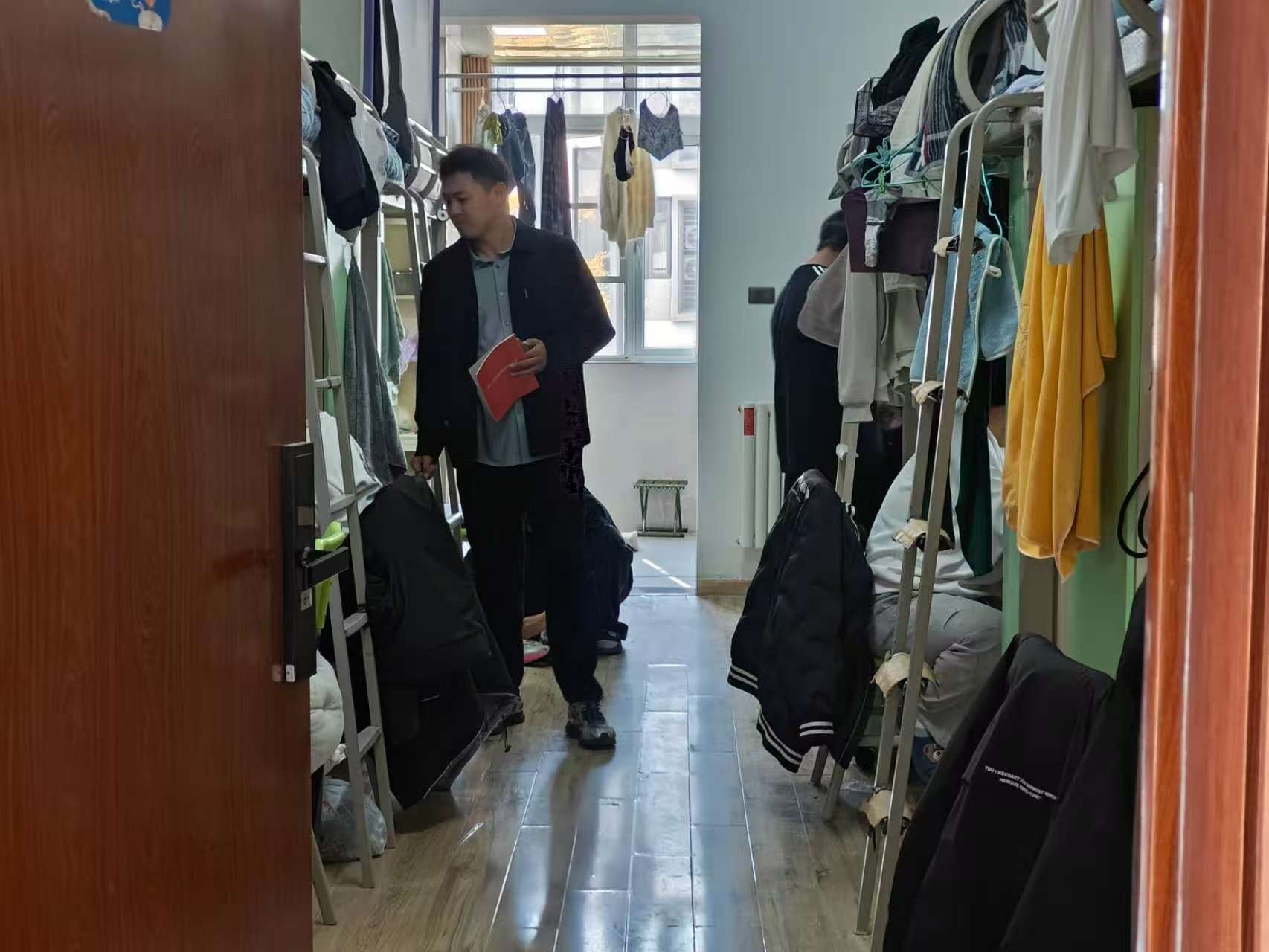 东野圣萍老师以消防安全、用电安全为核心开展宿舍专项检查。细致排查消防设施完好度、用电规范及违规电器使用情况,强调严禁私拉乱接电线,杜绝火灾隐患;积极宣传宿舍禁烟要求,维护无烟居住环境;重点慰问备战考研、考公的毕业生,关心复习进展与生活需求,指导劳逸结合,告知帮扶渠道,传递温暖关怀的同时强化安全自律观念。