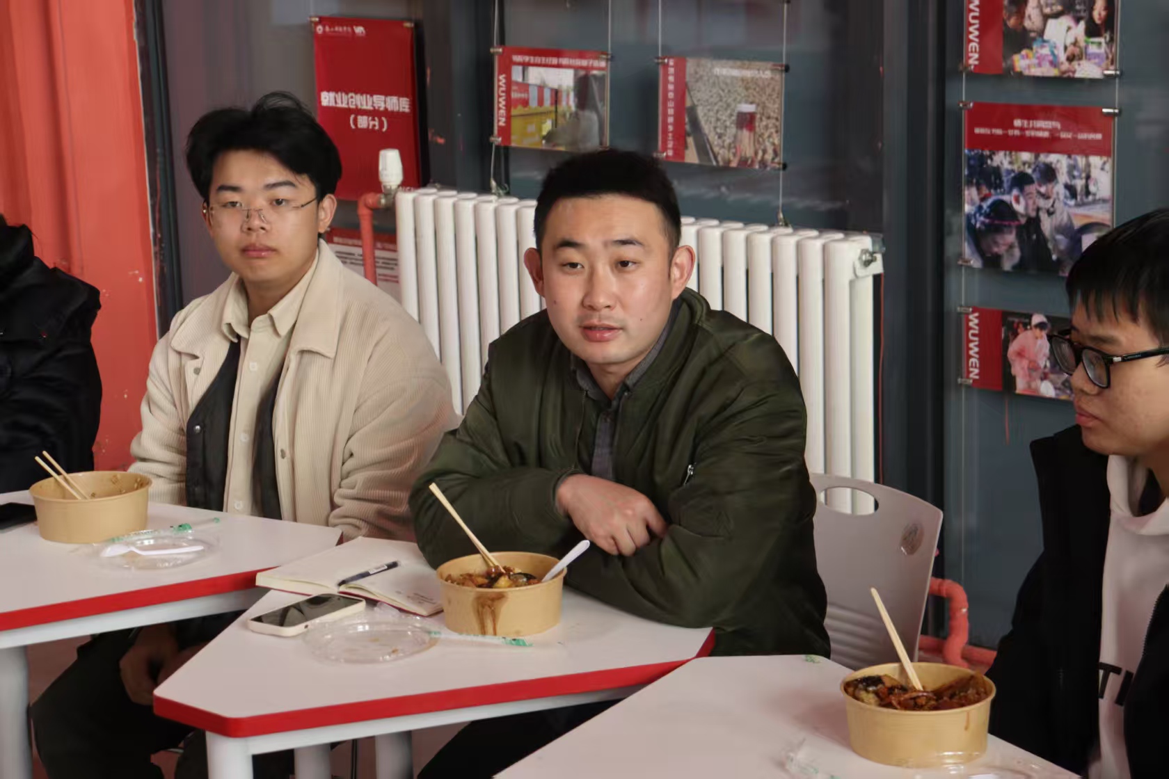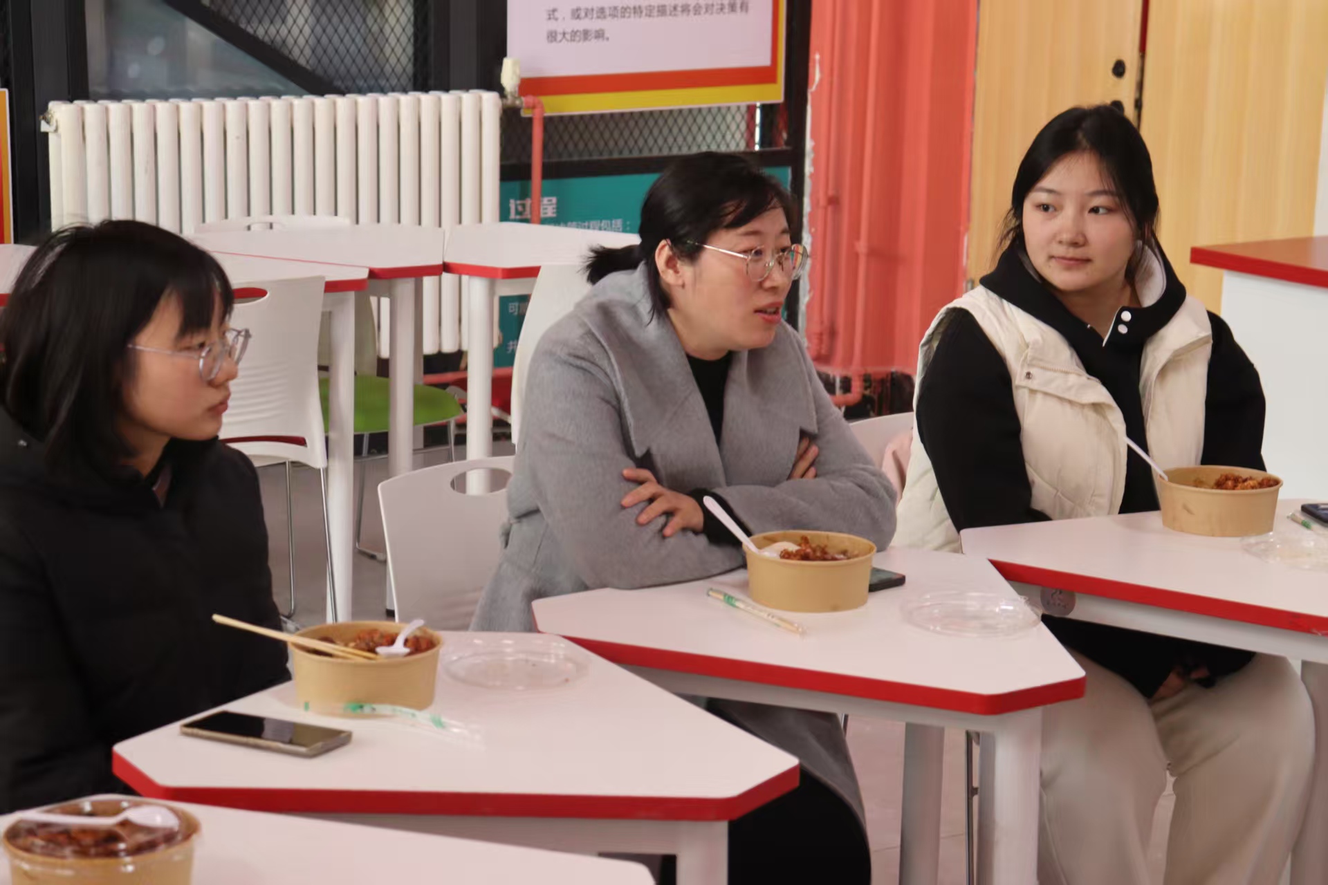 2025 年 12 月 10 日中午12:00,淬炼商学院在五汶书院 203 室举办了以学风建设为主题的院长共膳座谈会,院长鹿敏、副院长孙帅、就业创业工作办公室主任刘阳及辅导员尚丽娟与16 名 2025 级专升本学子围坐交流,以“共膳”促“共情”,聚焦学风建设开展坦诚对话,精准回应学生诉求,凝聚师生育人合力。
