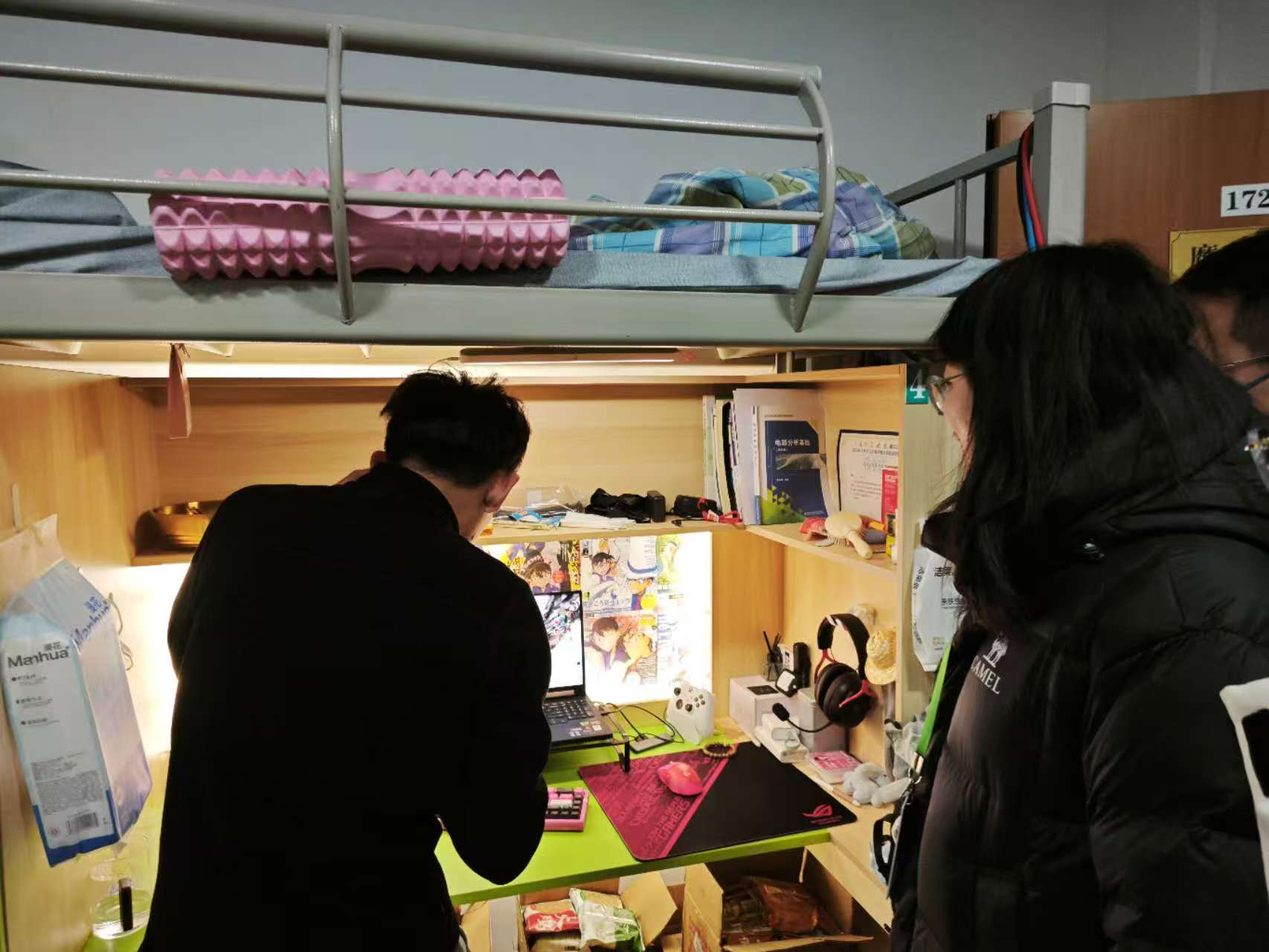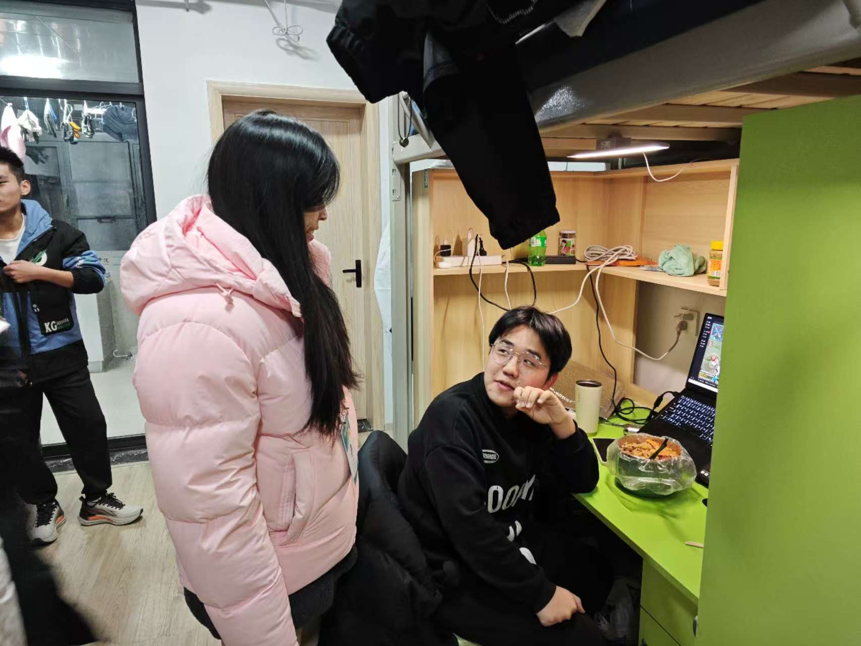 在走访宿舍的过程中,老师们重点关注了同学们近期的学习状态与课堂情况。“能否跟上教学进度?”“听课效果怎么样?”“日常学习中有什么具体困难?”老师们一边询问,一边叮嘱同学们要注重平时积累,端正学习态度。对于部分同学提出的上课容易分心、课后复习效率不高等问题,老师们现场给予建议,鼓励大家多参与课堂互动,及时与任课教师沟通交流。