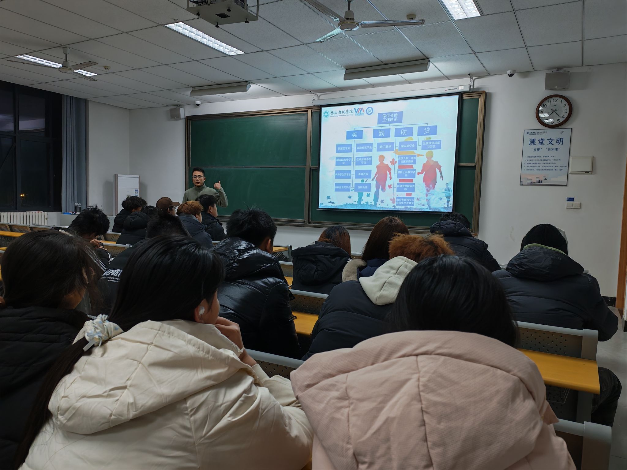 辅导员于兹房为2025级专科同学们详细讲解了国家及学校设立奖助学金的相关政策,并结合往届受资助学生的实际案例,阐述了资助政策背后蕴含的育人导向与深切关怀。让大家了解到奖助学金不仅是经济上的支持,更是对同学们勤奋向上、自强不息的肯定与激励。于老师提醒同学们,正确认识并使用奖助学金,将其用于减轻家庭经济压力、改善学习、生活条件,切忌盲目消费、相互攀比;同时要强化防范意识,警惕电信网络诈骗,守护个人财产安全。于老师鼓励全体同学珍惜在校时光,刻苦学习、积极进取,努力争取各类奖学金。同时,勉励获奖受助同学常怀感恩之心,树立远大志向,以实际行动回报学校的培养和社会的关爱,成长为社会需要的优秀人才。