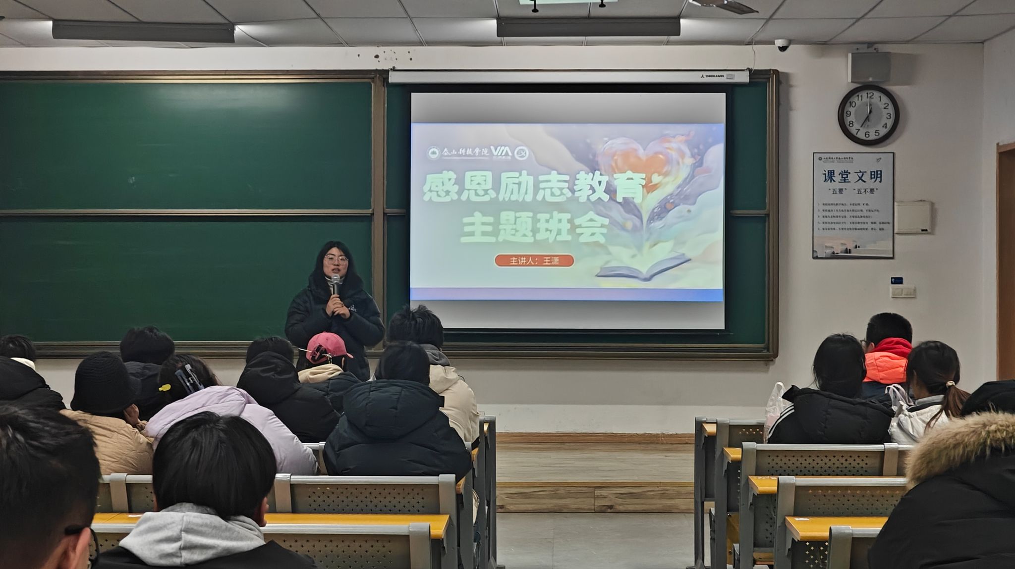 感恩是中华民族的传统美德,励志是青春远航的不竭动力。为深入践行立德树人根本任务,进一步培育学生的感恩意识,激发其奋发向上的励志精神,引导学生在成长路上明事理、懂感恩、敢担当,树立正确的人生观、价值观,我院各班级紧扣主题、精心筹备,陆续开展“怀感恩之心,赴励志之程”教育主题班会。本次活动以多样的形式、深刻的内容,让同学们在互动交流与深度思考中感悟真情、汲取奋进力量,为校园学风建设与德育工作注入了温暖活力。
