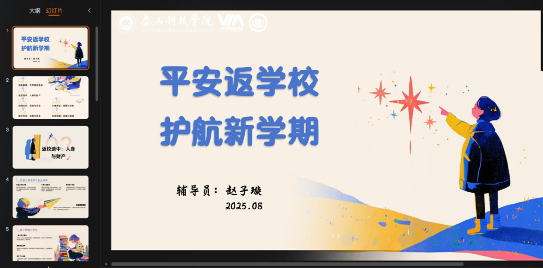 辅导员毕玉泽面向学生组织开展开学安全主题班会。班会围绕当前重点,覆盖多安全领域:提醒学生返校留意交通、财产和人身安全;警惕电信网络诈骗;因离校久,要检查宿舍电器和消防设施,排除隐患;关注食品和出行安全,保持健康习惯。旨在通过此次预警教育帮助同学们从“假期模式”转“开学模式”,牢记“安全第一”并付诸行动,共建平安校园环境。