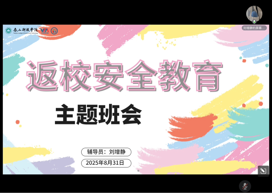 辅导员刘玫秀为保障学生返校人身与财产安全,面向2023级建筑工程技术专业学生开展线上安全教育班会。班会围绕“返校安全”与“校园安全”,讲解返校交通防护、宿舍消防、网络诈骗防范、财产保管等内容,结合典型案例提醒学生警惕电信诈骗、规范用电器,强化安全意识。同时,提示大三学业规划与实习安全,引导学生平衡学习与生活,做好新学期准备。此次班会夯实学生安全防护基础,为新学期工作开展筑牢安全屏障。
