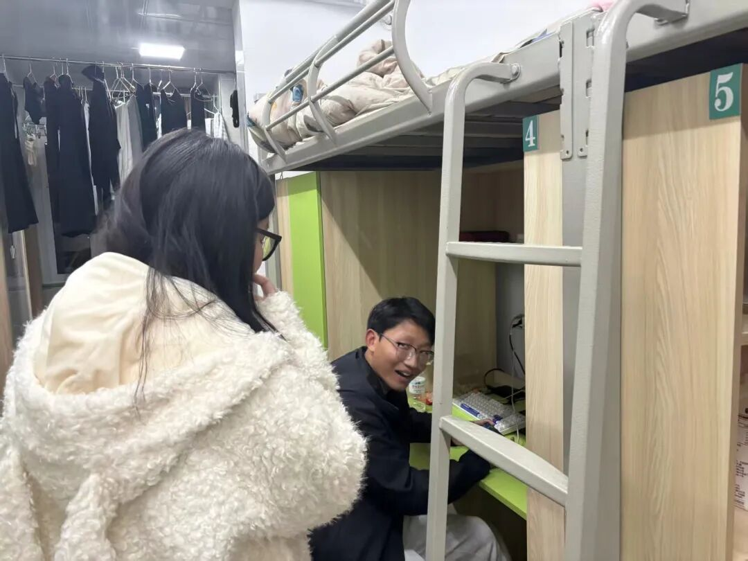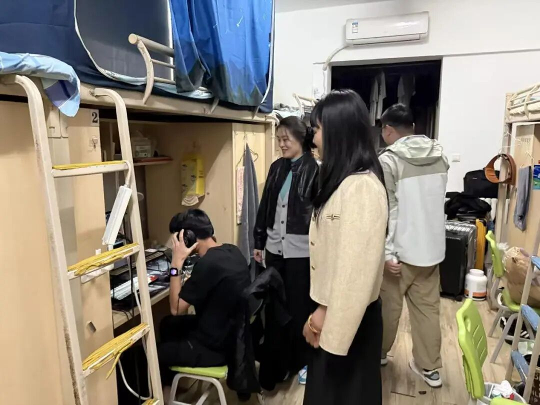 为加强宿舍安全管理、掌握学生思想动态与生活需求,潘立婷老师深入学生公寓开展宿舍走访。她逐间检查卫生,叮嘱安全用电、禁私拉电线及按时作息,倡导整洁生活习惯;同时通过面对面交流,掌握宿舍安全状况,倾听学生心声并记录意见建议,力求为学生营造安全舒适的居住环境。