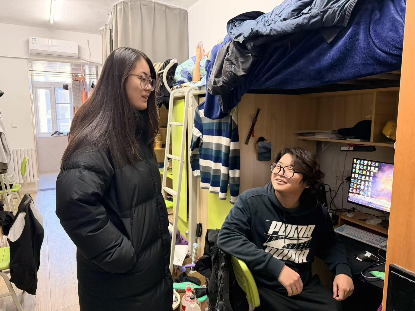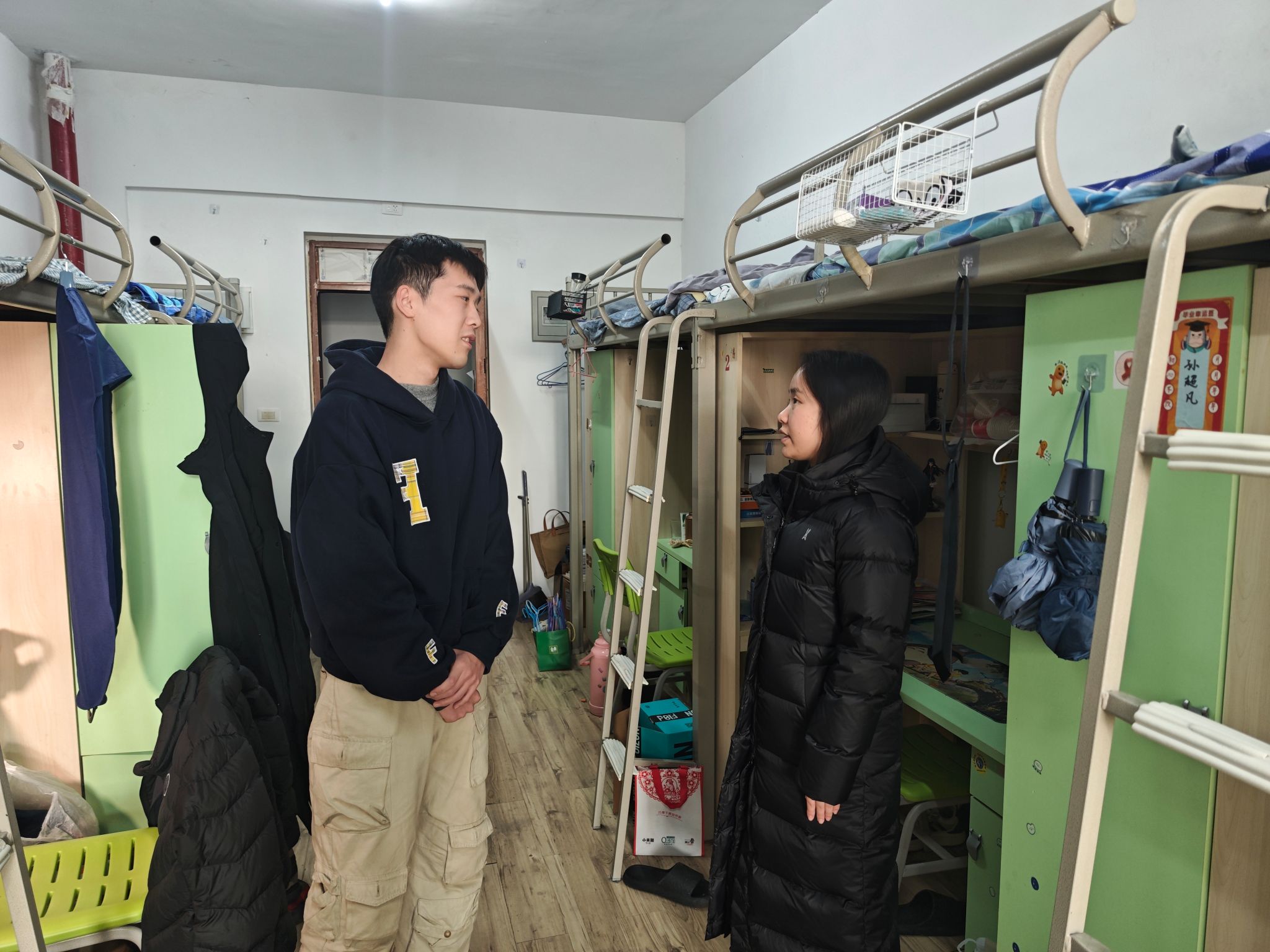 辅导员赵齐老师对东岳书院A、汶阳书院学生宿舍进行集中走访,发现大部分宿舍干净整洁、学习氛围浓厚、学生精神状态积极向上。走访中,赵老师提醒同学们认真复习、诚信考试、放松心态积极备考,同时指出个别宿舍存在的卫生死角、用电安全意识不强等问题,针对部分学生在学业压力、人际交往方面的困惑,现场给予开导建议并建立后续跟踪帮扶意向。未来将通过定期走访、主题班会等形式持续关注重点学生,营造安全文明和谐的生活学习环境。