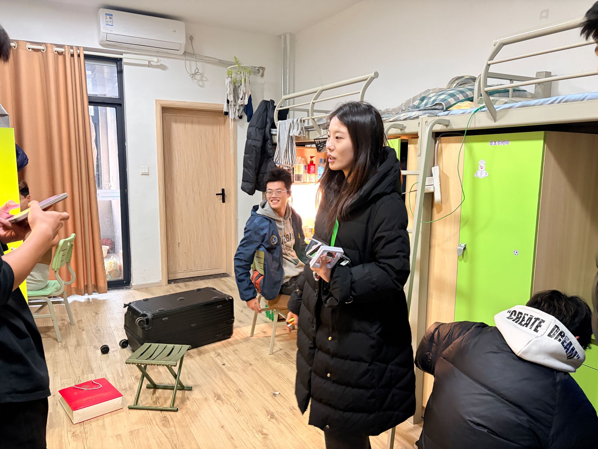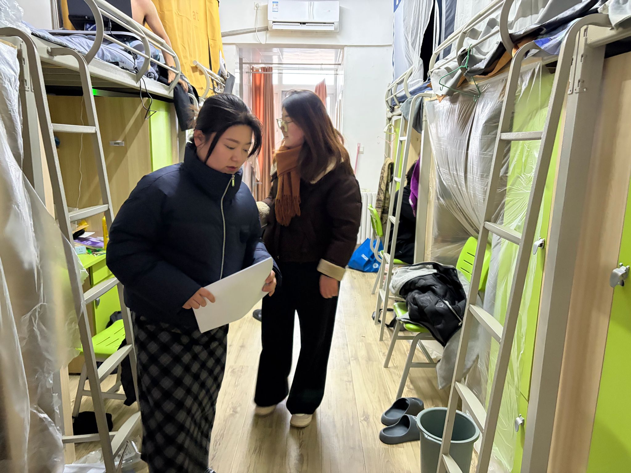 本次宿舍走访以“全覆盖、除隐患、保平安”为原则,涵盖智能工程学院所有学生宿舍,走访过程中各位辅导员老师逐间走访宿舍,系统检查阳台门窗是否锁闭完好、烟雾报警器是否完好或被遮挡、是否存在私拉乱接电线和违规使用电器、有无易燃物品遗留等,并查看卫生状况,切实做到不留死角、不存盲区。