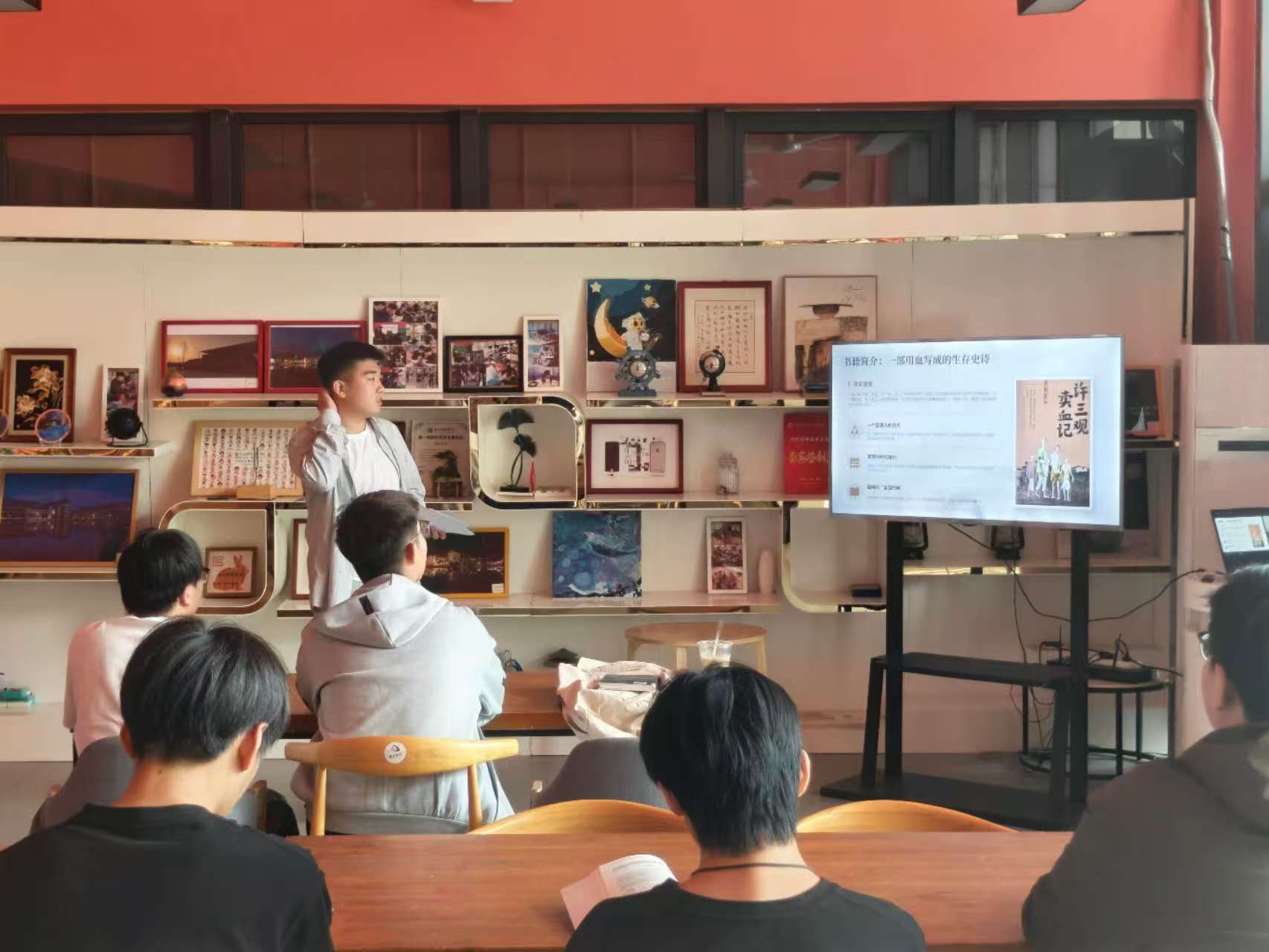 闫金政学长为大家分享的是《许三观卖血记》。在分享开始时,学长用一个沉重的问题。“如果生活只剩下最后一条路,你会选择什么?”让我们引发思考,随后靠着关键的情节和主题的探讨去让我们看到一个普通人在苦难中坚韧无比的意志力。“我们能从许三观身上学到什么?”学长发出了反问“生活的苦难从未放过许三观,但他始终保持着豁达与幽默。这种‘笑对人生’的乐观态度,不仅是他对抗命运的武器,更是支撑我们在逆境中坚守、并不断前行的重要精神力量。所以,乐观的面对所有困难,珍惜我们的眼下就是最重要的。”