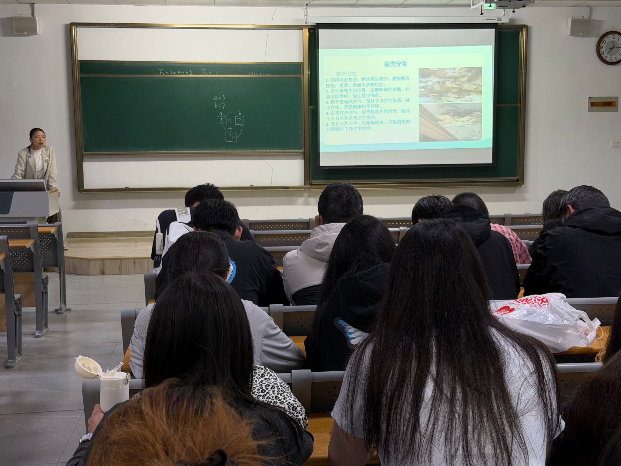 在宿舍卫生管理教育环节,辅导员详细讲解宿舍卫生标准化要求,从床铺整理、物品摆放、地面清洁、通风消毒、卫生死角清理等方面做出明确规范,倡导学生养成良好生活习惯,建立宿舍卫生值日制度,分工协作、定期清扫,打造干净整洁、温馨舒适的宿舍生活空间。良好的宿舍卫生不仅能改善居住环境、有效预防季节性疾病传播,更能涵养优良生活作风、凝聚宿舍集体氛围。此外,围绕宿舍文明建设,辅导员号召全体同学树立“宿舍是我家,文明靠大家”的集体意识,培养团结友爱、互帮互助的宿舍氛围,以整洁卫生的宿舍环境助力学习生活提质。
