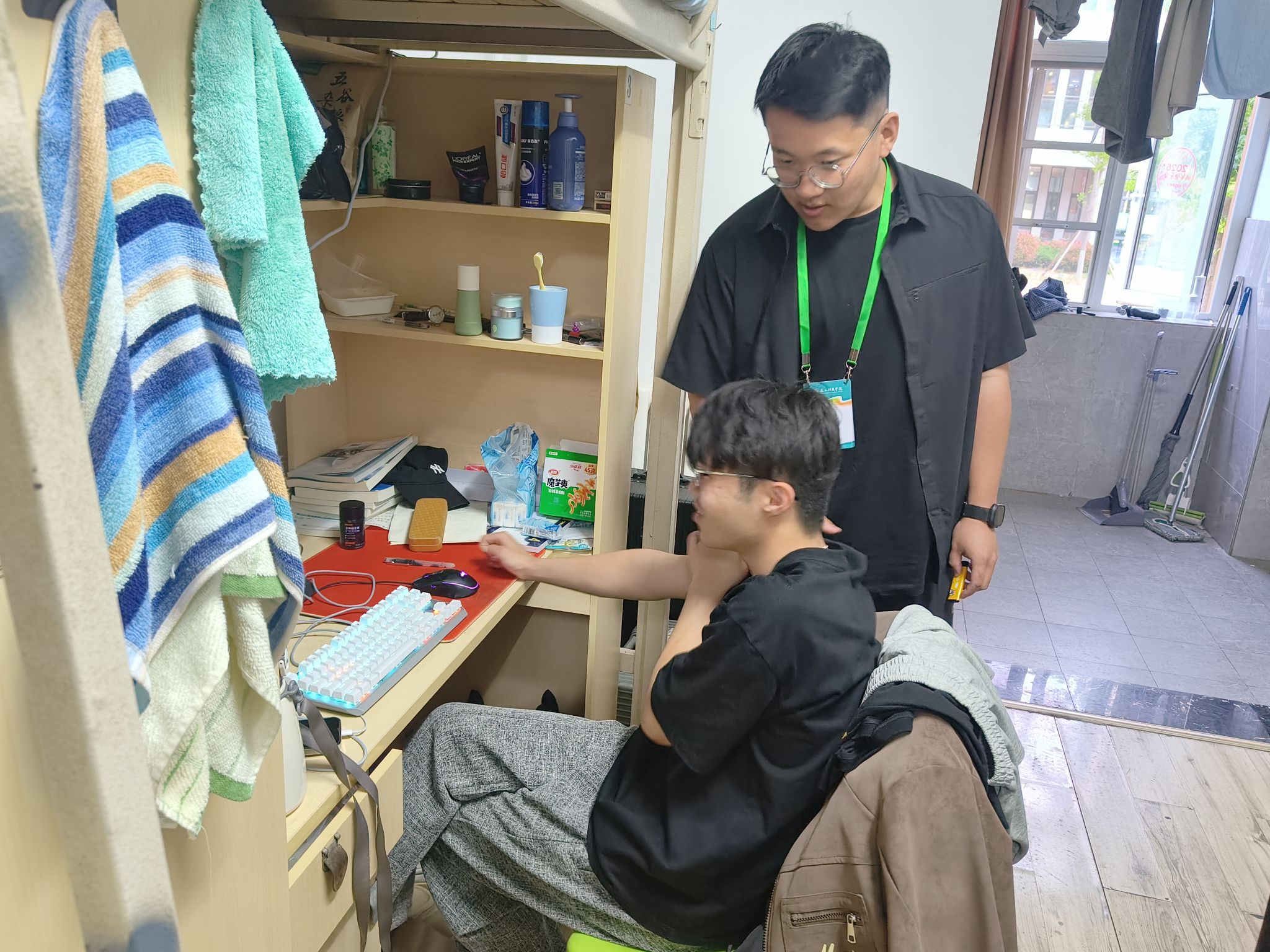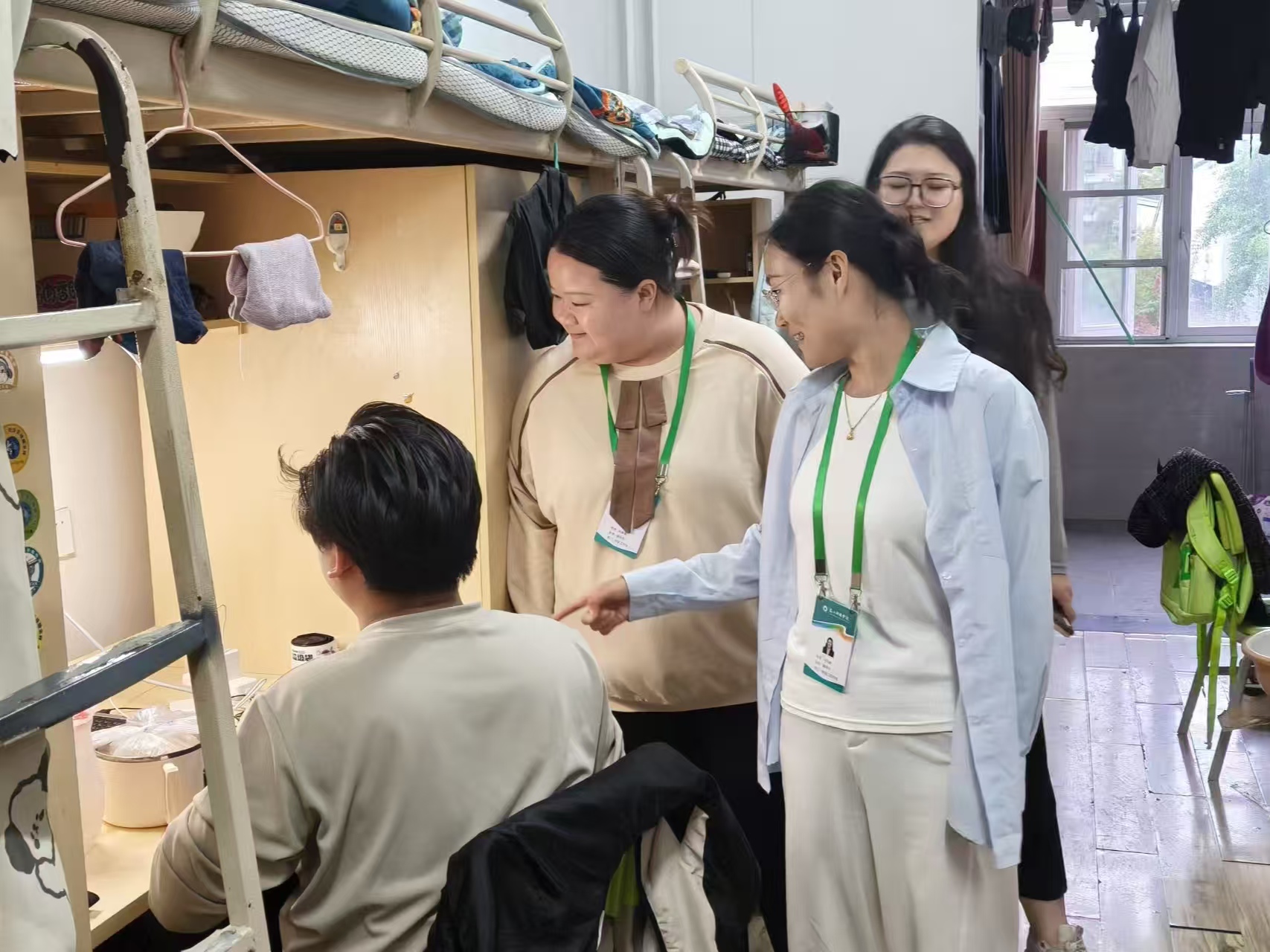 走访过程中,老师们走进一间间宿舍,与同学们进行了深入交流,聊学习、聊生活、聊近期的烦恼与收获。不少同学主动分享了自己在完满活动中的心得体会,也有的同学提出了在专业学习上遇到的困惑。老师们耐心倾听、细心解答,鼓励大家先抓主要矛盾,同时培养高效管理时间的能力,现场气氛轻松融洽。欢声笑语中,师生之间的距离悄然缩短。同学们表示,这样的走访不像检查,更像是一次温暖的“串门”。