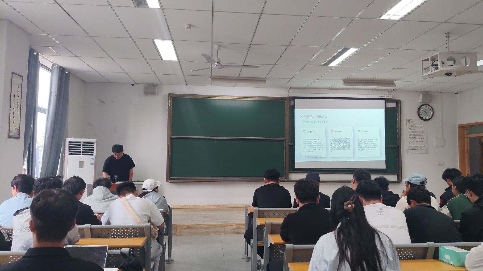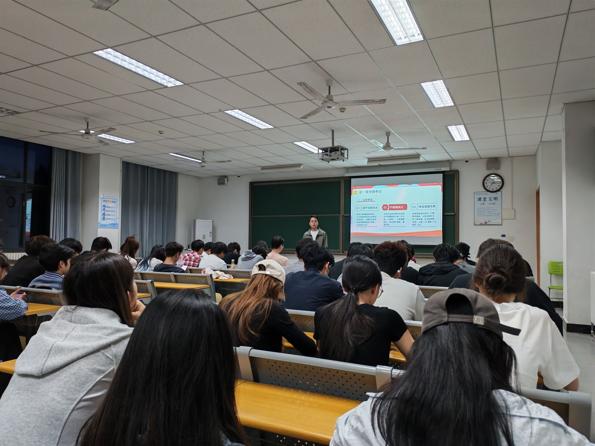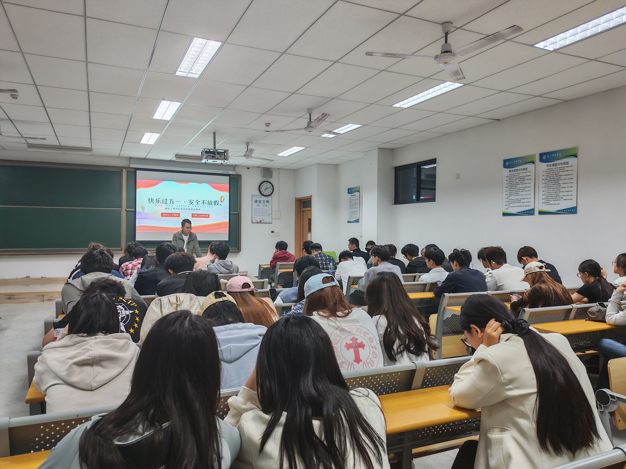 安全无小事,防患于未然。本次五一节前安全教育班会,通信工程学院辅导员全覆盖、开展安全宣讲,紧扣假期安全重点,结合真实案例、贴近学生生活,全方位普及交通、消防、反诈、防溺水、居家饮食等安全知识。通过节前集中教育提醒,有效消除了学生的麻痹松懈心理,进一步夯实了假期安全管理基础,切实提升了全体学生的安全防范意识和自救自护能力,时刻紧绷安全防线,常态化筑牢校园安全屏障,全力守护学生健康,保障校园安全稳定有序。