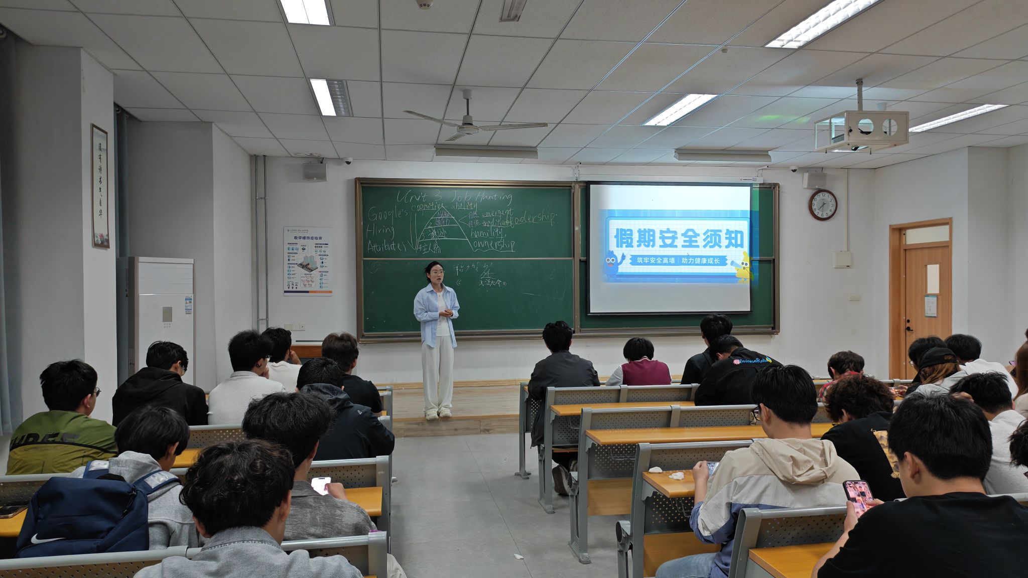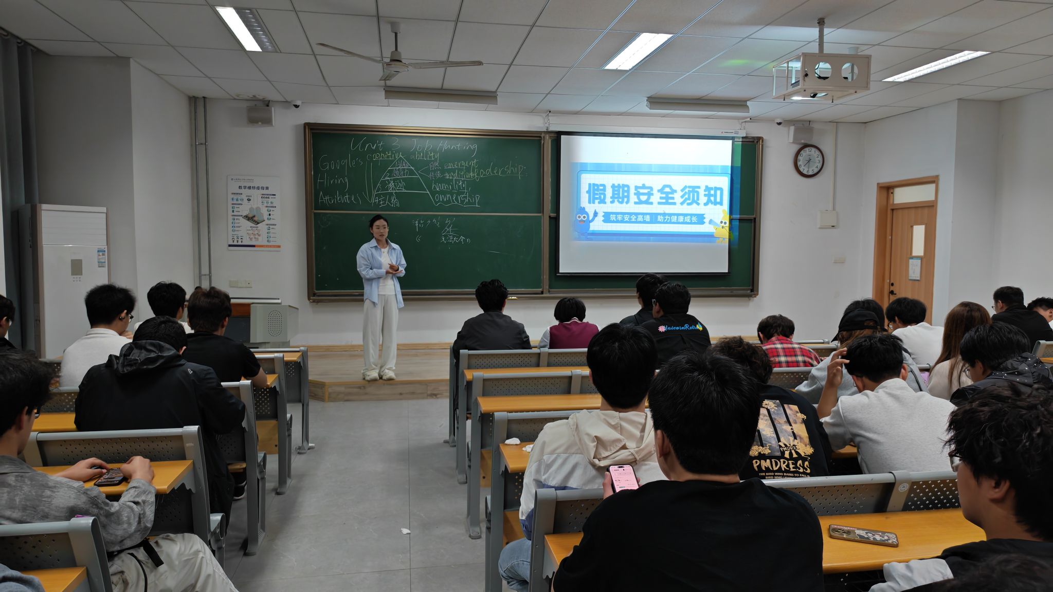 快乐过五一,安全不放假!于兹房老师于4月26日召开主题班会向2025级专科同学们传达了五一放假时间安排,从交通安全、预防溺水、饮食安全、居家安全、预防电信诈骗等内容,为同学们献上一份完整的“假期安全指南”。会上,于老师以近几年发生安全事故的真实案例为切入点,为同学们详细梳理了放假期间在校居家应该注意的问题,提醒大家离校前一定确保宿舍断电、关闭门窗,外出游玩时一定远离不熟悉的河流、池塘,严格遵守交通规则,提高电信诈骗的警惕性,时刻注意保护人身、财产安全,防止危险事故发生,确保安全过节。