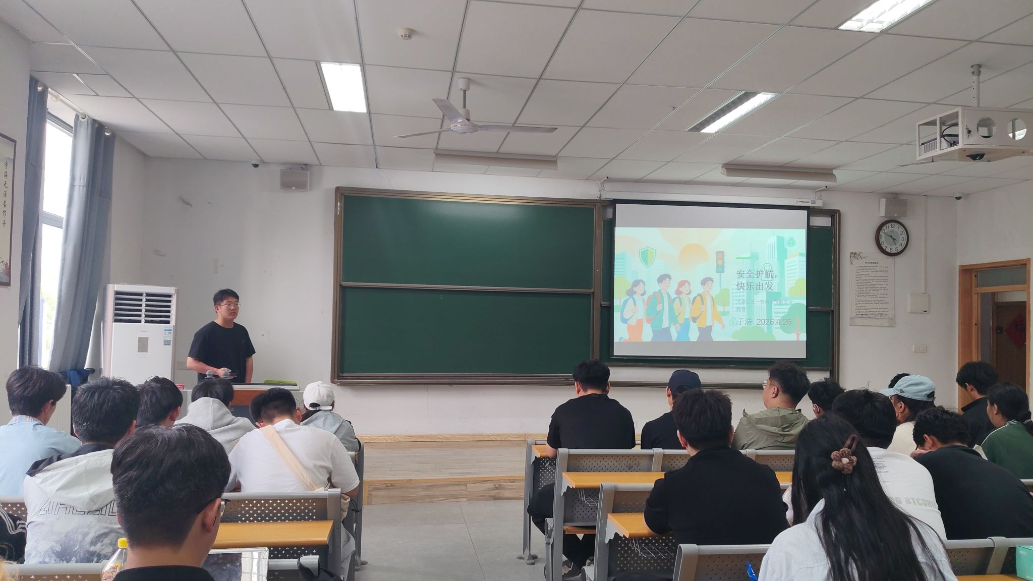 4月26日晚,辅导员于浩组织所带班级召开五一节前安全教育主题班会。结合大学生假期生活实际,于浩老师围绕交通安全、防溺水、食品卫生、宿舍安全、网络反诈等重点领域开展安全教育。他结合近期校内外真实安全案例,细致梳理了学生假期常见的安全隐患,告诫大家杜绝侥幸心理,时刻重视自身安全。班会重点强调了离校宿舍规范,要求同学们离校前仔细排查宿舍隐患,切断电源、关好门窗、妥善保管个人财物,不留安全死角。同时提醒学生,假期外出严格遵守交通规则,远离河道、水库等危险水域,注意饮食卫生,健康文明上网,提高反诈、防盗警惕性,不轻信网络刷单、陌生转账等骗局。此次安全教育全面覆盖假期各类安全风险,进一步增强了同学们的安全防范意识和自救自护能力,引导学生严守安全底线,平安、文明度过五一假期。